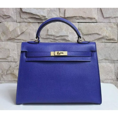 • Hermes Kelly 32cm Epsom Lederhandtasche Electric Blue Gold