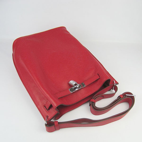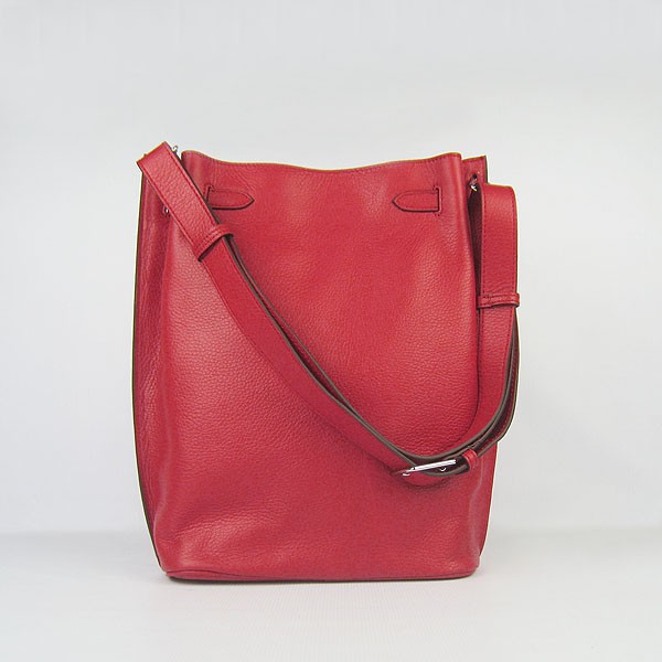 Hermes So Kelly 28cm Togo Leder Umhängetasche Rot Silber