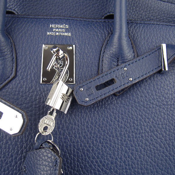 Hermes Birkin 30cm Togo Leder Handtaschen dunkelblau silber