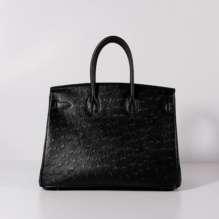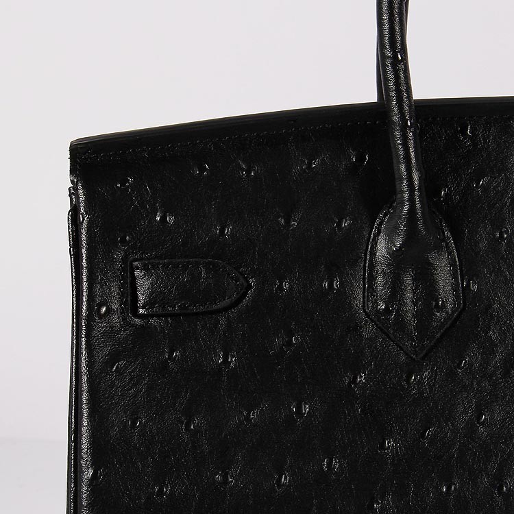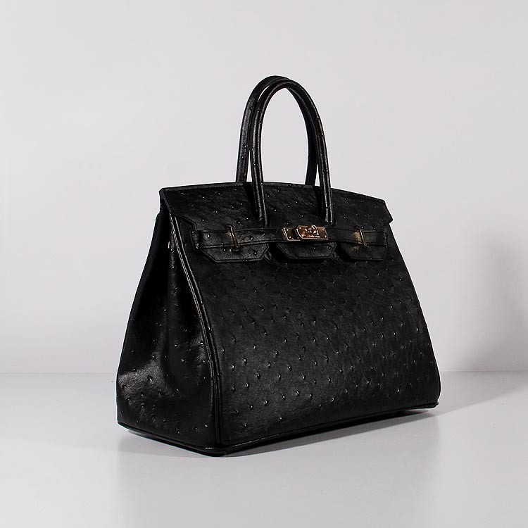 Hermes Birkin 35cm Straußenledertasche Schwarz Gold