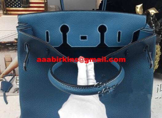 Hermes Birkin 35cm Togo Leder Handtaschen blau silber