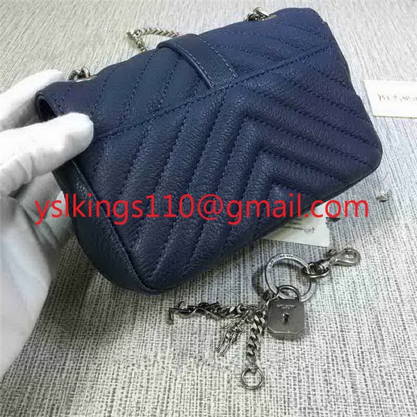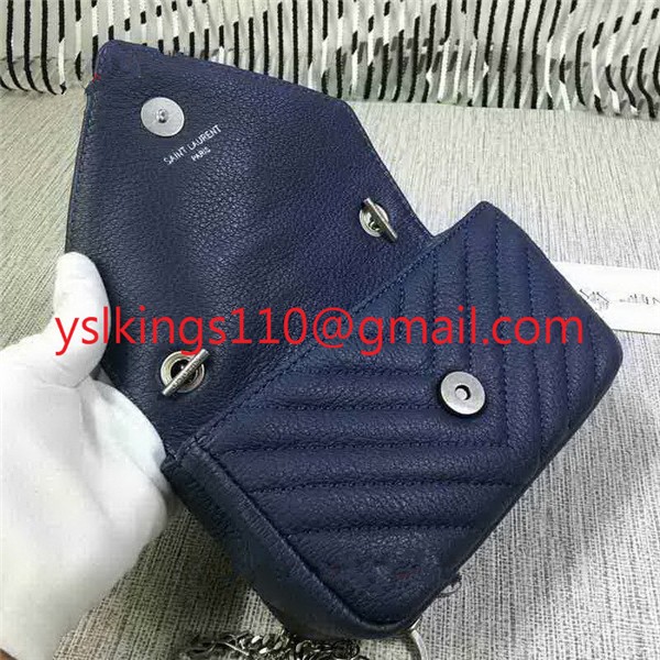 YSL Kleine Umschlagtasche mit Kette Ziegenleder Blau 18cm