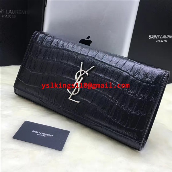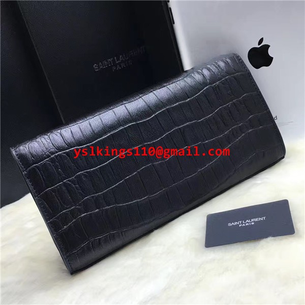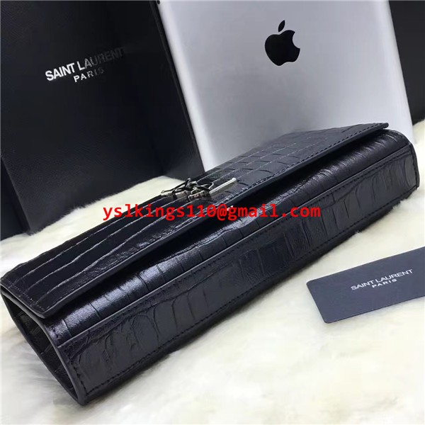 YSL Clutch 27cm Krokoleder Schwarz Silber