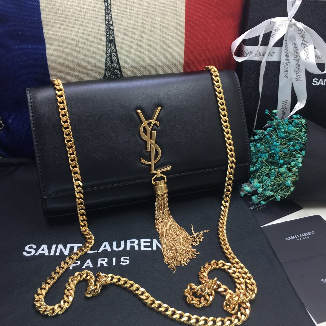Die YSL-Umhängetasche wird mit folgendem Zubehör geliefert: YSL-Staubbeutel und YSL-Karten.